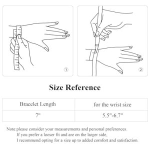 - Link chain bracelet Size: 10mm width ,18cm/21cm length ,with adjust tool ,can be shortened 1-2cm.The bangle chain bracelet size: 6mm width ,17 cm (6.7 inches),and the inner diameter is approximately 6 cm x 5 cm (2.36 inches X 1.97 inches), suitable for most wrist sizes from 5.7″ to 6.7″.
