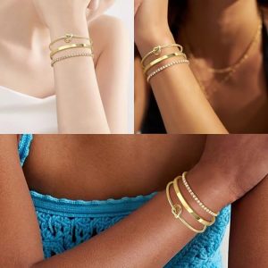 - Different Styles of Trendy Bracelets:The gold jewelry set includes three styles: a classic tennis bracelets/love bracelets/gold bangles