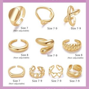 - [Adjustable Gold Thick Ring]—We provide 10 gold chunky ring styles. Their default size is size 7. They can be fine-tuned from size 6 to size 9. The opening can be adjusted to a greater degree for easy wearing.