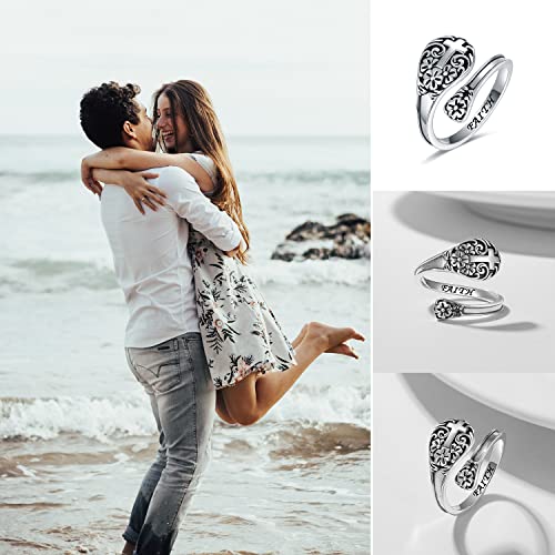 Cross Rings Sterling Silver Faith Adjustable Wrap Rings for Women Teens Inspirational Jewelry Gifts