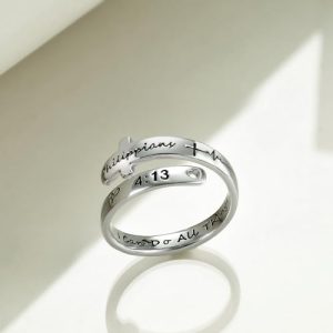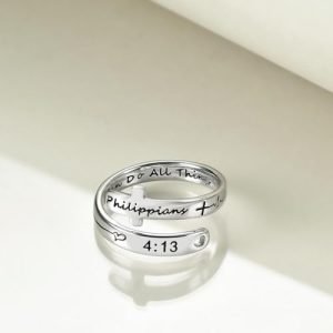 - Inspirational Ring:The faith ring is engraved words “I can do all things”inside the ring band, cross shape and decorated with heart.