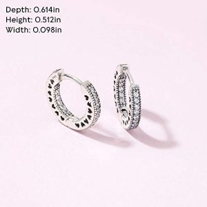 - Pavé Heart Hoop Earrings: These small sterling silver hoop earrings feature cut-out hearts that provide a romantic edge while cubic zirconia adds understated sparkle